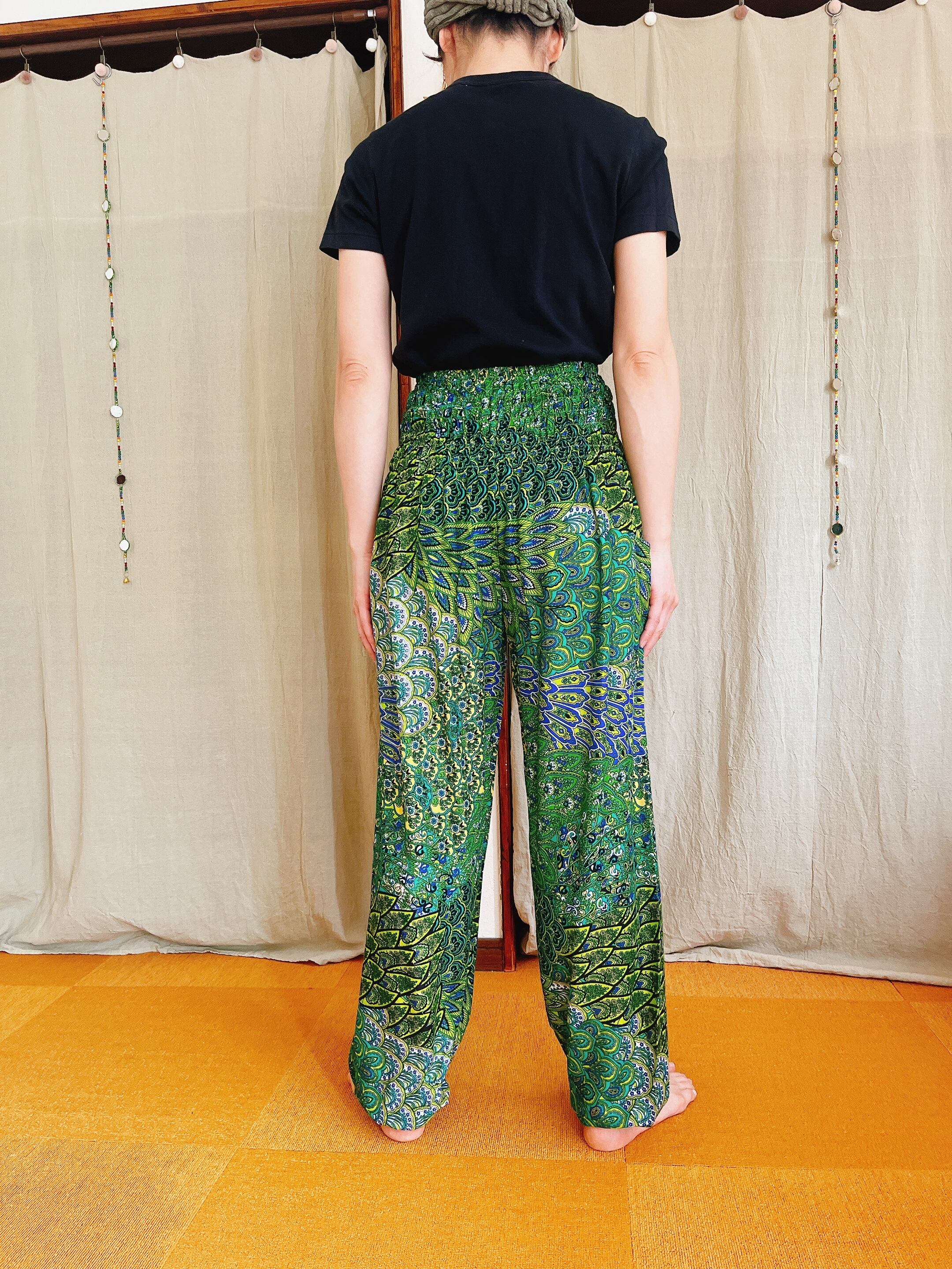このタイパンツは最初の数回の洗濯で色落ちする可能性がございますので、他の衣類とは分けて単独で洗っていただくことをお勧めします。その他は特にお手入れの特別なポイントはございませんので、普段通りにお取り扱いいただければ大丈夫です。