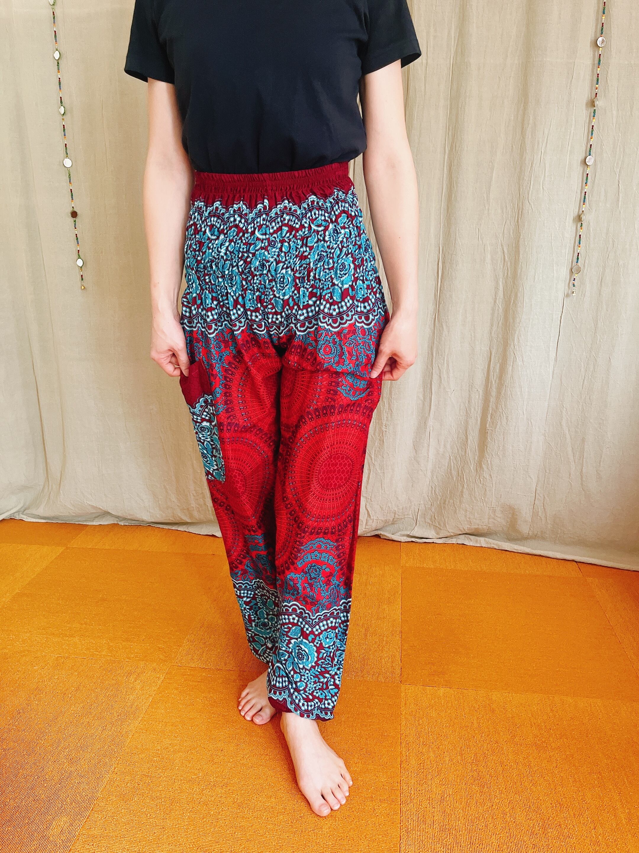 このタイパンツは最初の数回の洗濯で色落ちする可能性がございますので、他の衣類とは分けて単独で洗っていただくことをお勧めします。その他は特にお手入れの特別なポイントはございませんので、普段通りにお取り扱いいただければ大丈夫です。